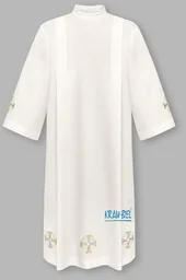 Alba jest wykonana z żorżety. Posiada zakładki, dzięki czemu bardzo dobrze się układa. Góra wykończona stójką i suwakiem na ramieniu. Zdobi ją haft richelieu. Wysoka jakość wykonaniaNie gniecie sięŁatwa do prasowaniaSzybko i łatwo się pierze w temp.