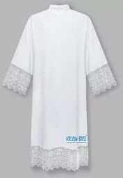 Alba wykończona gipiurą 20 cmWysoka jakość wykonaniaNie gniecie sięŁatwa do prasowaniaSzybko i łatwo się pierze w temp. 40 st. C.Rozmiar alby dobieramy do aktualnego wzrostu.