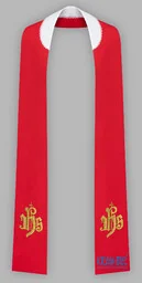 Czerwona stuła haftowana - wąska jednostronna Wzór IHS