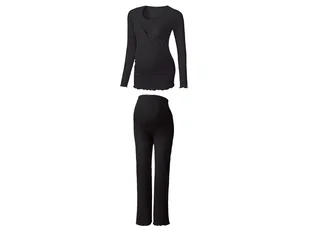 esmara® Piżama ciążowa z bawełną (koszulka +spodnie) (XS (32/34), Czarny)
