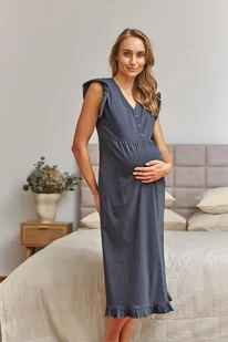 Praktyczne kieszonki zwiększają funkcjonalność koszuli i pozwalają mieć pod ręką drobne niezbędne przedmioty. Subtelne falbanki przy rękawkach oraz na dole koszuli dodają całości lekkości i romantycznego charakteru, podkreślając kobiecy styl. Długość midi z ozdobnym wykończeniem sprawia, że koszula prezentuje się estetycznie również jako elegancki homewear. Starannie wykonane detale i przeszycia podkreślają jakość oraz trwałość produktu, nawet przy częstym praniu. Dzianina z certyfikatem OEKO-TEX Standard 100 gwarantuje bezpieczeństwo dla wrażliwej skóry mamy i dziecka.