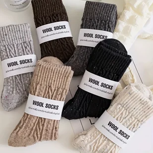 TEMU 6 Par 'Termiczne Zimowe Pluszowe Wełniane Skarpety - Ciepłe Skarpety do Połowy Łydki i Ponad Łydkę - Skarpety na Pogodę, Tylko Ręczne Pranie,