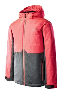 Dziecięca kurtka narciarska, technologia Tech-Proof ocieplany kaptur zapięcia na rzepy w mankietach dwie kieszenie boczne zapinane na zamek wewnętrzne kieszenie zamek na całej długości pas przeciwśnieżny