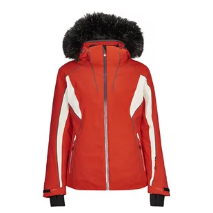 20 000 mm oddychalność: 10 000 g/m2/24h Sportowy, lekko taliowany krój Materiał 4 Way stretch System wentylacji pod pachami Podpinka typu Mesh Klejone szwy Pas przeciwśnieżny Regulowany, odpinany kaptur Odpinane, sztuczne futro Wysoki kołnierz Regulowane mankiety Wewnętrzne mankiety przeciwśnieżne Materiał: poliamid, elastan, poliester