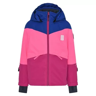 Na piersi oraz w dolnej części pleców kurtka wyposażona jest w kultowe odblaskowe naszywki inspirowane klockami LEGO®. Z przodu znajdują się dwie wygodne kieszenie zapinane na zamek. Pas śnieżny i wysunięte elastyczne mankiety zapewniają wygodne dopasowanie i ochronę przed wiatrem i śniegiem.
