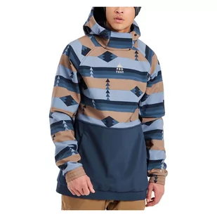Męska kurtka na narty i snowboard Lekko ocieplona Regularne dopasowanie Model wkładany przez głowę Wodoodporność: 10 000 mm Oddychalność: 10 000 g/24h Krytyczne szwy podklejone Wysoki kołnierz połączony z kapturem Kaptur nie jest kompatybilny z kaskiem Kieszeń typu kangur Kieszonka na karnet Elastyczne mankiety i dolne wykończenie 94% poliester / 6% elastan Stylowa kurtka  Protest Konow o swobodnym dopasowaniu i dużej elastyczności. Niech stylowy wygląd Cię nie zwiedzie. Konow jest pełnoprawną kurtką sportową, która chroni przed wiatrem i deszczem, a jednocześnie zapewnia dużą swobodę ruchu podczas efektownych zjazdów.