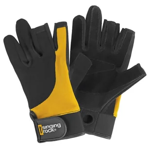 Lekkie rękawice z doskonałym chwytem i trzema otwartymi palcami dla delikatnej obsługi są doskonałym wyborem do pracy na wysokościach, via ferratach i parkach linowych. Lekkie rękawice z doskonałym chwytem i trzema otwartymi palcami dla delikatnej obsługi są doskonałym wyborem do pracy na wysokościach, via ferratach i parkach linowych. Wnętrze dłoni pokryto wytrzymałą, podwójną warstwą syntetycznej i dwoinowej skóry bydlęcej klasy A. Dodatkowym wzmocnieniem jest obszar wysokiego zużycia między kciukiem a palcem wskazującym. Na środkowym i serdecznym palcu znajdują się dwie specjalne pętle do łatwego i szybkiego zdejmowania rękawic.