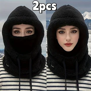 TEMU 2 szt. Damska Zimowa Czapka Termiczna z Pluszu - Elastyczny Sznurek, Lekka i Ciepła do Jazdy na Rowerze, Narciarstwa i Sportów na Świeżym