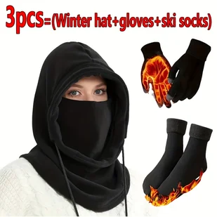 TEMU Zimowa Czapka, Nakrycie Głowy, Szalik na Szyję, Rękawiczki, Ciepłe Skarpety Zestaw Sportowy do Wędrówek, Jazdy na Rowerze, Narciarstwa -