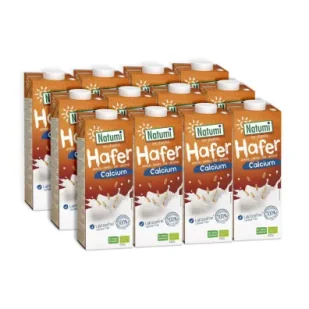 Zestaw 12 szt. Natumi Napój owsiany z wapniem z alg morskich 1L - opakowanie zbiorcze. SKŁADNIKI woda, pełnoziarnisty owies* (16%), olej słonecznikowy*, algi morskie (Lithothamnium 0,4%), sól morska (*certyfikowany składnik ekologiczny) OPIS Ekologiczny napój z pełnoziarnistego owsa. Jest to produkt w 100% roślinny, nie zawiera laktozy oraz cholesterolu. WARTOŚĆ ODŻYWCZA W 100 ml Wartość energetyczna - 206 kJ / 49 kcal Tłuszcz - 1,3 g, w tym kwasy tłuszczowe: