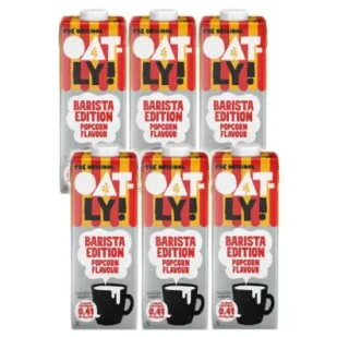Napój owsiany Popcorn Zestaw 6 x 1 lOatly to seria napojów roślinnych stanowiących świetną alternatywę dla mleka krowiego. Są bogate w substancje odżywcze, witaminy oraz minerały. Okazuje się, że wzbogacenie oryginalnego Oatly Barista Edition o nutę maślanego popcornu to prawdziwy hit smakowy. Wiemy, że może to wyglądać na niecodzienny wybór, ale też dokładnie dlatego efekt jest tak niesamowity, gdy chcesz zaskoczyć wszystkich swoją inwencją twórczą w komponowaniu kawowych drinków. Na bazie tego produktu możesz przygotować naprawdę, co tylko zechcesz: