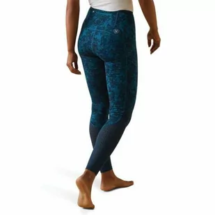 Legginsy jeździeckie damskie Eos FS Tight - Ariat - deep petroleum camo floral Wykonane z elastycznego, przyjemnego materiału. Perforowany materiał na łydkach zwiększa cyrkulacje powietrza. Dzięki technologii AriatTEK Heat Series materiał w kontakcie ze skórą podczas wysokich temperatur oddaje przyjemny chłód. Pełny lej Ariat Hex Grip zwiększa przyczepność do siodła. Praktyczne kieszenie na obu udach.