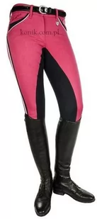 Niezwykle dziewczęce, uszyte z bardzo dobrej jakości materiału bryczesy HKM. Posiadają lej w kontrastującym kolorze oraz biało-granatowe wstawki po bokach. Nogawki zakończone elastycznym materiałem. Kolor: różowyRozmiary: 170 cm176 cm .