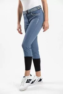 Bryczesy damskie VOGUE Grip - HarcourWykonane z wodoodpornej, oddychającej tkaniny dopasowującej się do ciała. Technologia Fix System - 8 warstw silikonu nałożonych w celu zapewnienia maksymalnej przyczepności. Kieszonki ozdobione brokatową wstawką. Na lewym udzie ozdobny napis "Harcour" wyklejony z kryształków. Materiał: 92% poliamid, 8% elastanKolor: