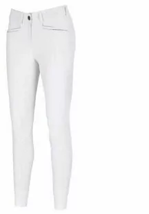 Bryczesy damskie PHIA SELECTION GRIP - Pikeur Z pełnym silikonowym lejem, który zwiększa przyczepność do siodła i gwarantuje stabilny dosiad. Są całoroczne, dzięki zastosowaniu lekkiej tkaniny TERMA, która zapewnia ona silną, innowacyjną izolację termiczną. Do produkcji materiału wykorzystano dodatki tlenkowe w przędzy oraz cząsteczki ziaren kawy we włóknie polamidowym. Ponadto tkanina przejawia duże właściwości antybakteryjne i pochłania nieprzyjemne zapachy. Niebywałą zaletą bryczesów jest boczna kieszeń, która pomieści telefon i inne drobne przedmioty.