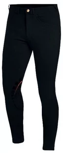 Męskie bryczesy z wysokiej jakości lejem kolanowym silikonowym pomagającym utrzymać odpowiednią pozycję w siodle. Bardzo dobry materiał elastyczny całych bryczesów jest wyjątkowo wygodny i dopasowany do ciała. Nie posiada rzepów na nogawkach i szwów na kolanach, które mogłyby sprawiać dyskomfort. Kolor: black - czarny. . .