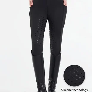 TEMU Wysokoodchylanie, Elastyczne Jodły Jeździeckie z Silikonem - Szybkoschnące i Oddychające Spodnie do Jazdy Konnej z Antypoślizgowym Uchwytami,