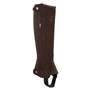 Czapsy jeździeckie z syntetycznego materiału Amara z klinem bocznym i podbiciem. Boczny zamek błyskawiczny z górnymi i dolnymi guzikami.