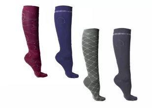 Podkolanówki jeździeckie AW 23 2-pak - QHPWykonane z oddychającej, elastycznej dzianiny. Zestaw zawiera dwie pary podkolanówek z ozdobnym nadrukiem. Materiał: 97% nylon, 3% elastanKolor: saddlery - granat/bordostirrup - opcja zielony/szary. . .