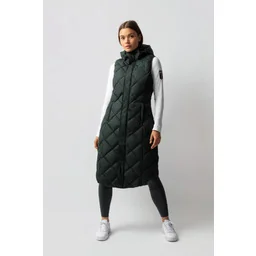 Kamizelka długa ocieplana - B//Vertigo - scarab greenWykonana z nieprzemakalnego (3000mm), oddychającego (3000mvp) materiału pikowanego. Długi, taliowany fason. Posiada odpinany kaptur. Z tyłu kamizelki znajduje się specjalne rozcięcie które umożliwia jazdę w kamizelce. Wyposażona w elastyczne paski do przypięcia płaszcza do nóg podczas jazdy.