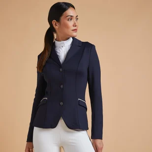Szukasz marynarki na nadchodzący sezon zawodów? Dopasowana w talii marynarka jeździecka z eleganckimi wykończeniami. Użyte materiały zapewniają pełną swobodę ruchów. Elastyczny materiał w żaden sposób nie krępuje ruchów. Leży dobrze na różnych typach sylwetki. Prać w temperaturze 30 stopni.