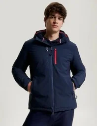Kurtka męska zimowa LONDON WINTER - Tommy Hilfiger Equestrian - desert skyWykonana z gładkiej, o diagonalnym splocie dzianiny o właściwościach wiatroszczelnych. Wypełnienie pochodzi w 100% z recyklingu. Zapinana na dwukierunkowy zamek błyskawiczny. Na prawej piersi ozdobny nadruk i logo natomiast po prawej stronie znajduje się praktyczna kieszeń zapinana na suwak. Wyposażona w boczne, zapinane kieszenie oraz nieodpinany kaptur który za pomocą napa można przymocować do pleców dzięki czemu nie przeszkadza podczas jazdy.