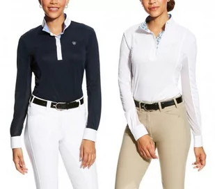 Klasyczna koszulka z długm rękawem. Wykonana z materiału, który nie pozwala na nagrzewanie słońcem, a jednocześnie świetnie odprowadza wilgoć. Pod pachami, jak i na całej długości ręki siateczka dla jeszcze lepszej wentylacji. Kołnierzyk stojący. Kolor: granatowy, białyMateriał: