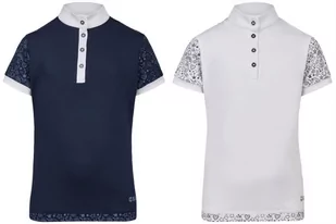 Oryginalna koszulka konkursowa dla dzieci i młodzieży. Wykonana z elastycznego mikromateriału funkcjonalnego. Jej rękawki i plecy zostały ozdobione uroczym wzorkiem. Listwa guzikowa i stójka są zapinane na stylizowane guziki. Bluzka jest łatwa w czyszczeniu - szybko schnie i nie wymaga prasowania.