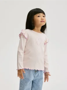 Reserved - Bawełniana bluzka z falbanką - pastelowy róż