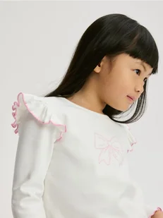 Reserved - Bawełniana bluzka z falbanką - złamana biel