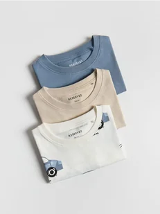 Reserved - Bawełniany t-shirt 3 pack - złamana biel