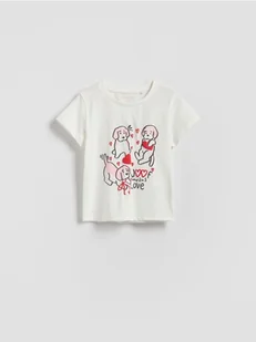 Reserved - Bawełniany t-shirt z nadrukiem - złamana biel