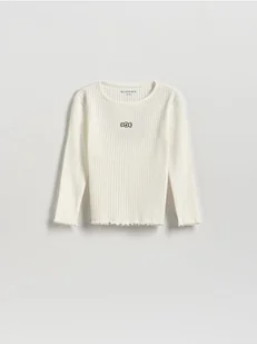 Reserved - Prążkowana koszulka - złamana biel