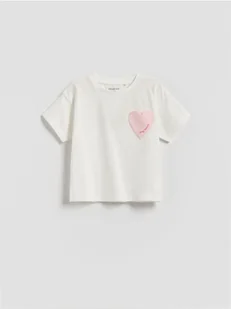 Reserved - Bawełniany t-shirt z nadrukiem - złamana biel