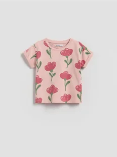 Reserved - Wzorzysty t-shirt - pastelowy róż