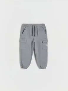 Reserved - Wysokoelastyczne tkaninowe joggery cargo - jasnoszary