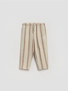 Spodnie o swobodnym fasonie, wykonane z bawełnianej dzianiny.