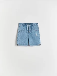 Szorty o prostym kroju, wykonane z bawełnianej tkaniny.