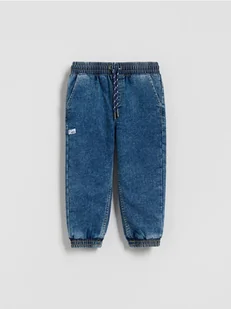 Spodnie o swobodnym fasonie, wykonane z dzianiny z bawełną.