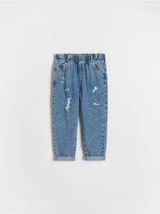 Jeansy o prostym fasonie, wykonane z bawełnianej tkaniny.