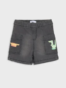 Sinsay - Szorty jeansowe z ozdobnym nadrukiem na kieszeniach - szary