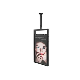 Ekrany o ultrawysokiej jasności z serii Samsung OMN-D zostały opracowane specjalnie do użytku w oknach wystawowych. Ceilingmount OM46N-D to uchwyt sufitowy zaprojektowany specjalnie dla tych smukłych 46-calowych ekranów z innowacyjnej serii digital signage. Uchwyt sufitowy można przechylać o ± 30°, dzięki czemu można go również montować na pochyłych sufitach. Wysokość uchwytu sufitowego można zmieniać w zakresie od minimum 600 mm do maksimum 1000 mm za pomocą stopni blokujących po stronie montażowej. Możliwe jest również zamontowanie ramy bezpośrednio do sufitu (bez przedłużenia).