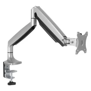 Uchwyt biurkowy do monitorów TooQ DB3032TNR-S to akcesorium zaprojektowane, by zapewnić solidne i wszechstronne rozwiązanie dla monitorów o przekątnej od 13" do 32", kompatybilne ze standardami VESA 75x75 i 100x100. Wykonany z aluminium i metalu, oferuje wytrzymałą konstrukcję zdolną utrzymać maksymalny ciężar do 9 kg, gwarantując stabilność i bezpieczeństwo dla ekranów płaskich i zakrzywionych. Uchwyt posiada ergonomiczne ramię z tłokiem gazowym, które umożliwia płynną i bezwysiłkową regulację, ułatwiając pochylenie, obrót i rotację w szerokim zakresie ±90° na każdym z tych osi, dając dużą swobodę ustawienia ekranu na optymalnej wysokości i kącie dla użytkownika. Wysokość można regulować do 505 mm, a ramię wysuwać do 605 mm, dostosowując się do różnych konfiguracji i przestrzeni roboczych. Elastyczny system montażu pozwala na instalację za pomocą zacisku lub śruby przechodzącej, w zależności od dostępnej powierzchni, a system organizacji kabli pomaga utrzymać porządek i zapobiega plątaniu. Elegancki, srebrny design i kompaktowe wymiary 316 x 112 x 485 mm sprawiają, że uchwyt jest kompatybilny zarówno z monitorami standardowymi, jak i zakrzywionymi, będąc idealnym rozwiązaniem do optymalizacji przestrzeni na biurkach w biurze lub domu. Zestaw zawiera uchwyt z kompletem montażowym i narzędziami oraz szczegółową instrukcję ułatwiającą instalację. Ze względu na parametry techniczne i jakość wykonania, TooQ DB3032TNR-S to niezawodny i funkcjonalny uchwyt biurkowy dla użytkowników wymagających zaawansowanego zarządzania i mobilności monitorów w środowisku profesjonalnym lub prywatnym.