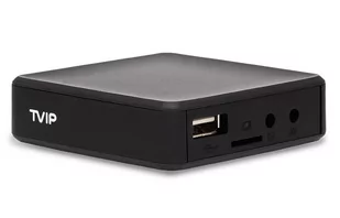 Mediatenci TVIP S-Box v. 530 Będąc urządzeniami uniwersalnymi, TVIP Mediacenters są w stanie sprostać różnorodnym potrzebom Klientów, a szeroka gama modeli TVIP S-Box pozwala wybrać centrum multimedialne, które najlepiej spełni wymagania użytkownika. Dekoder IPTV działa w oparciu o bardzo wydajny czterordzeniowy procesor Amlogic S905W 1,2 GHz. Cechuje się pięciordzeniowym układem graficznym Mali-450, pamięcią RAM 1 GB i Flash 8 GB. Obsługuje rozdzielczość 3840x2160 (HDR), 1080p 60 fps lub 2160p 30 fps i kodeki H.