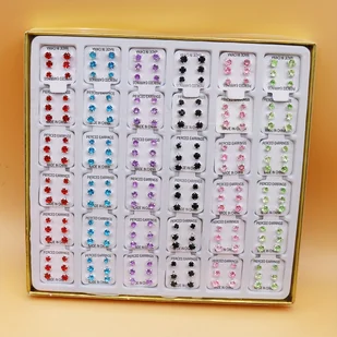 TEMU Kolorowe Kryształki Losowo Mieszane 108 Par Minimalistyczne Modne Kolczyki z Czterema Zębami Rozmiar Mix Białe i Kolorowe Igły Żelazne