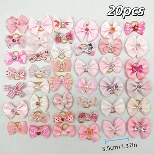 TEMU 20 sztuk ręcznie robionych kokardek z poliestru w różnych stylach z akcentami ze sztucznych diamentów i pereł, akcesoria do włosów dla psów i