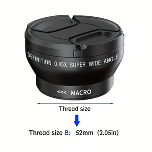 TEMU Obiektyw szerokokątny 52MM 0.45X Professional HD (z częścią makro) do Canon, Nikon, Sony, Pentax - montaż na aparat