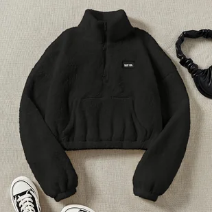 Bluza damska z polaru - 100% poliester, jednolity , półgolf, casualowy styl młodzieżowy, dzianina, kolekcja jesień/