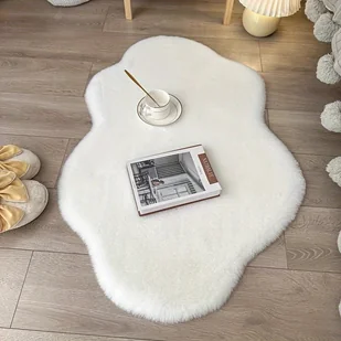 Pluszowy Dywan w Kształcie Chmury z Sztucznego Królika - Miękki, Gruby i Ciepły na Zimową Dekorację | Ręcznie Prany Poliester z Podkładem PVC