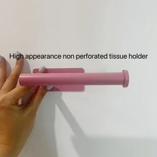TEMU Łatwy w Montażu Różowy Uchwyt na Toaletowy ze Stali Nierdzewnej - Samoprzylepny, Bez Wiercenia, Kwadratowa Podstawa do Dystrybucji Papieru